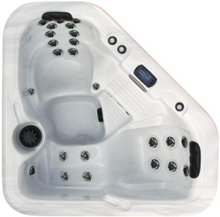 The 0500 model has a unique triangular shape to fit the most demanding spaces. It has room for 2 adults and includes 20 LED jewel lights. It is available in 110 or 220, has 24 trix style black and stainless steel jets, and features the K-85 digital topside control panel. The 0500 is a great choice for any application including deck corners, condos and anyplace else!